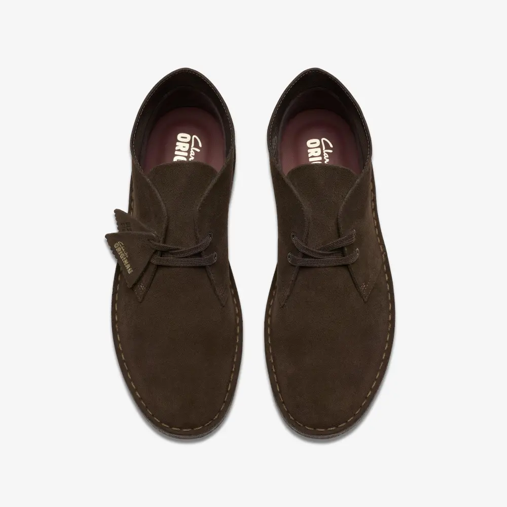 Cultural cachet and design DNA: no shoe is quite like the Clarks Originals Desert Boot. Born in the '50s, its minimal, progressive style sparked a worldwide footwear revolution – worn by beatniks, mods, Britpop bands, and Jamaican rude boys. And every design detail today remains true to that first pioneering pair. Here, the boot’s crafted, clean lines are enhanced with premium brown suede and finished with an unfussy lace fastening. The authentic crepe sole completes this distinctive silhouette. Instantly recognizable, forever iconic. A true original.