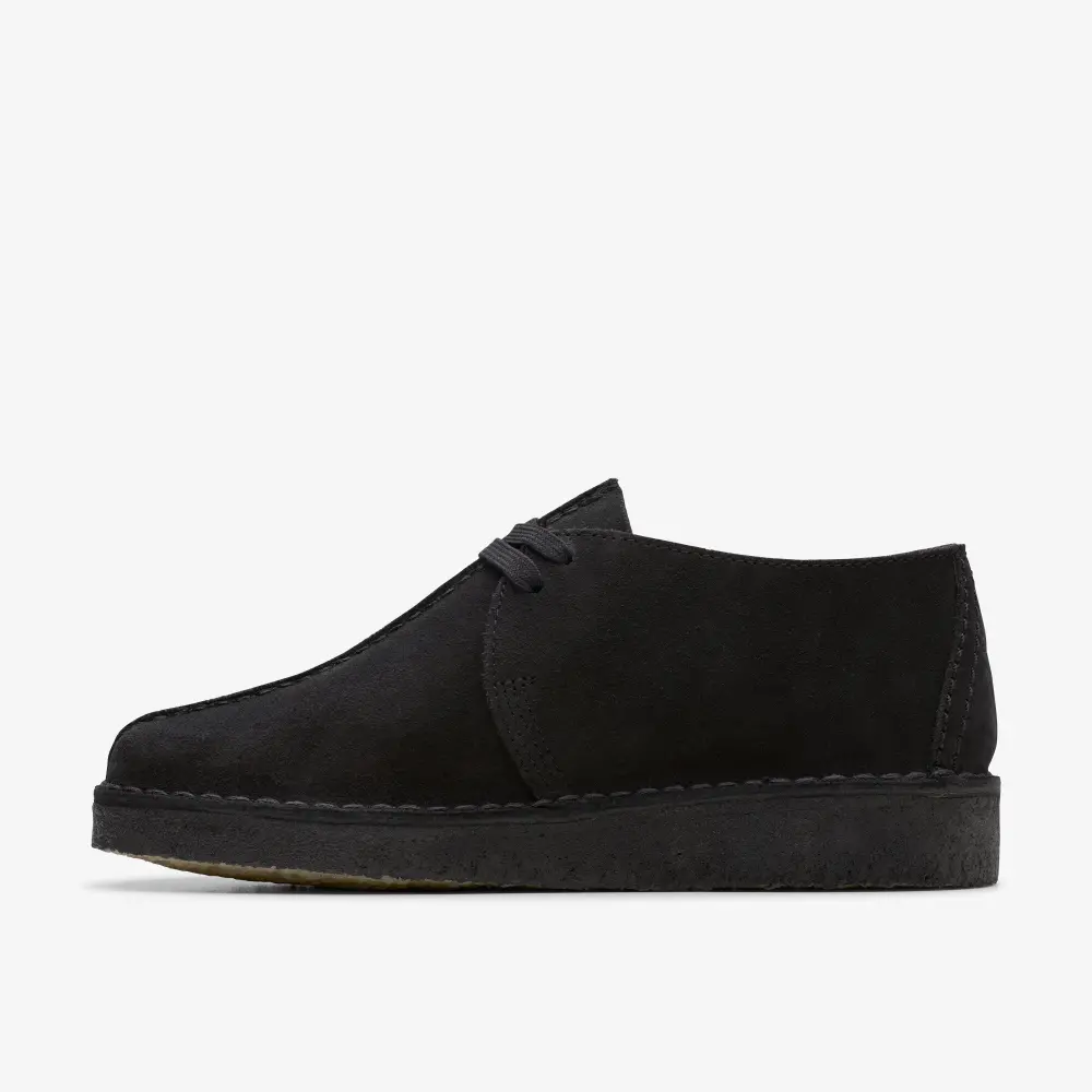 An icon crafted for everyday wear, the Desert Trek returns in timeless black ready for a season of ultra-versatile styling. Butter-soft suede uppers contrast perfectly with its natural crepe sole, while flat laces and our classic fobs lend a casual finish.