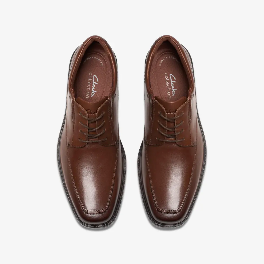 A minimalist silhouette with refined details, our Dresslite Ace dress shoe features a lightweight EVA outsole and foam-lined inside to surround the foot in ultimate comfort – from navigating the boardroom to bringing a polished touch to weekend looks. Defined by a premium leather upper with burnished detailing, it features an authentic lace and heritage stitching to enhance its crafted aesthetic for a look that’s undeniably Clarks.