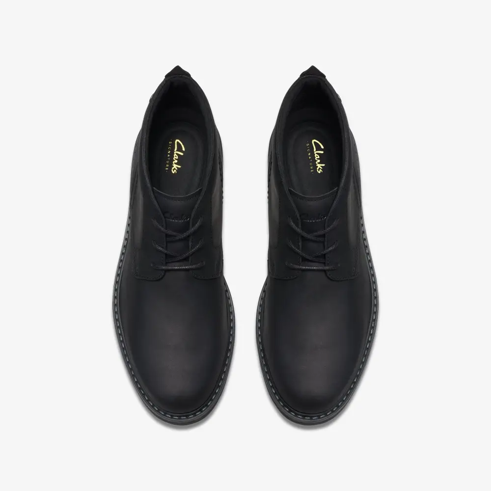 Easy-wear casual boot Newford Mid combines rugged design with crafted elements. Featuring rich heritage leathers that age beautifully, this Chukka profile references the iconic Clarks Originals Desert Boot™ with its distinctive sloping top line. Underfoot, a Contour Cushion footbed offers unrivaled underfoot comfort and a TR sole guarantees durability.