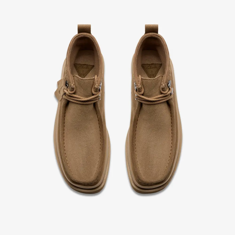 technical take on the inimitable Clarks Wallabee™, Wallabee™ FTR2 Hi is expertly designed with a soft dark sand suede upper and  supportive comfort features. Its moccasin-inspired silhouette echoes our perennial profile, while our signature Contour Cushion footbed and innovative C360 EVA compound deliver modern comfort. Flecked laces complete the look perfectly.