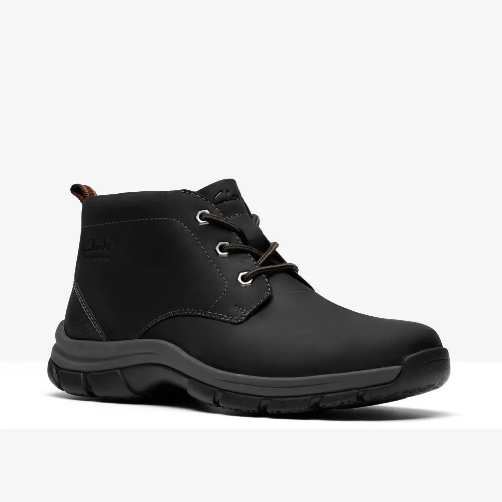Durable lace-up boot Walpath Chukka makes a practical, hard-wearing pick. Its sturdy construction and slip-resistant rubber sole provide underfoot confidence, while a classic black colorway pairs effortlessly with everyday outfits. Crafted from waterproof leather, this heritage-inspired 3-eye chukka boot combines purpose-built functionality with casual ease.