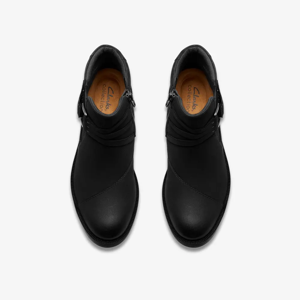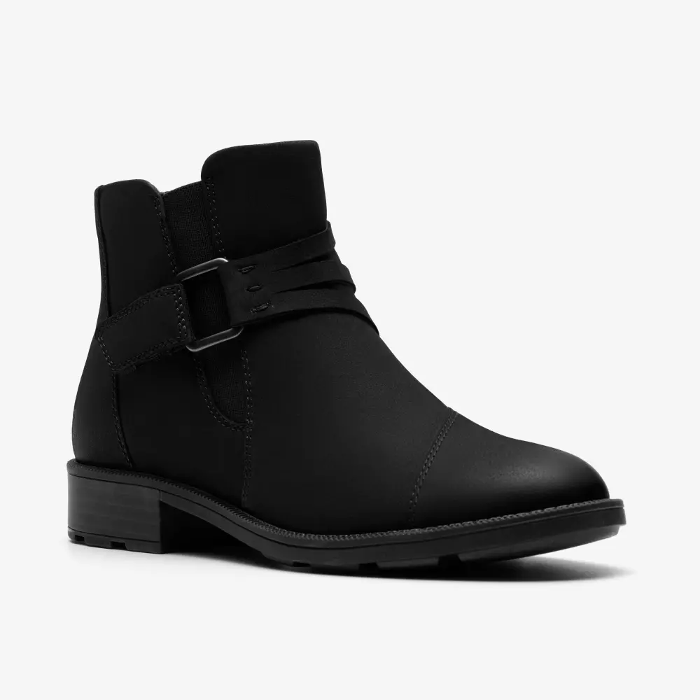 With distinctive buckle detailing, Adalynn Faye channels a modern-casual aesthetic for the new season. We've crafted it with soft black nubuck for a classic, premium look, while a low stack-effect heel and metal hardware deliver understated style. Underfoot, a lugged sole offers practicality and ease/p>