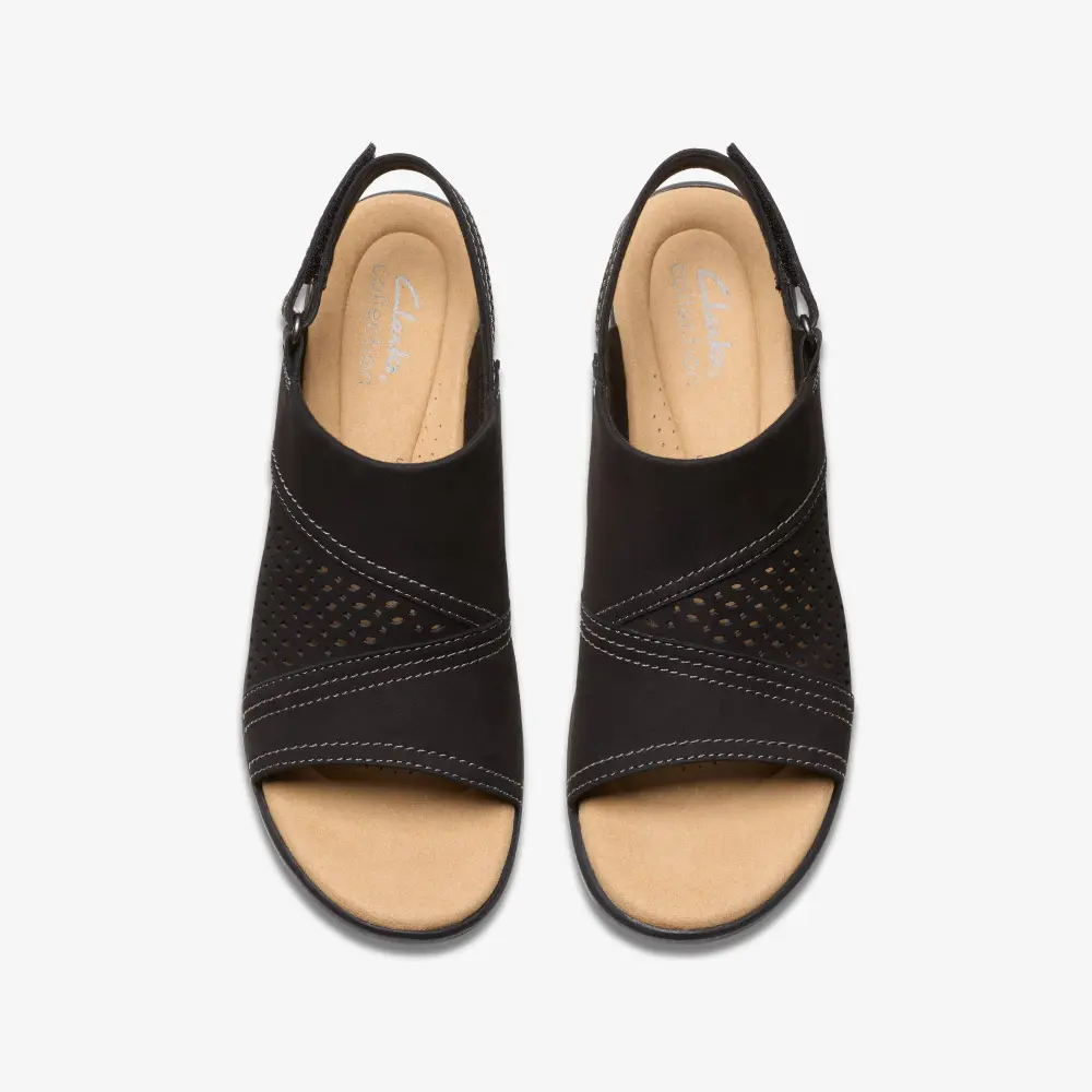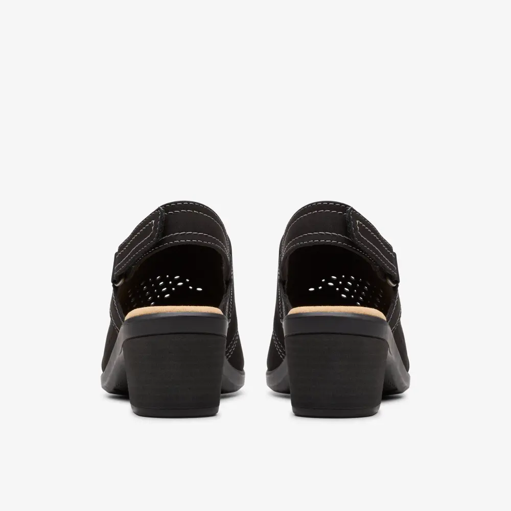 An easy-walk block heel underpins our Emily 2 Mist sandal, adding inches to your look without ever sacrificing on signature Clarks comfort. A soft black nubuck upper channels a premium aesthetic, while our Ultimate Comfort foam footbed delivers maximum comfort on every warm-weather occasion.