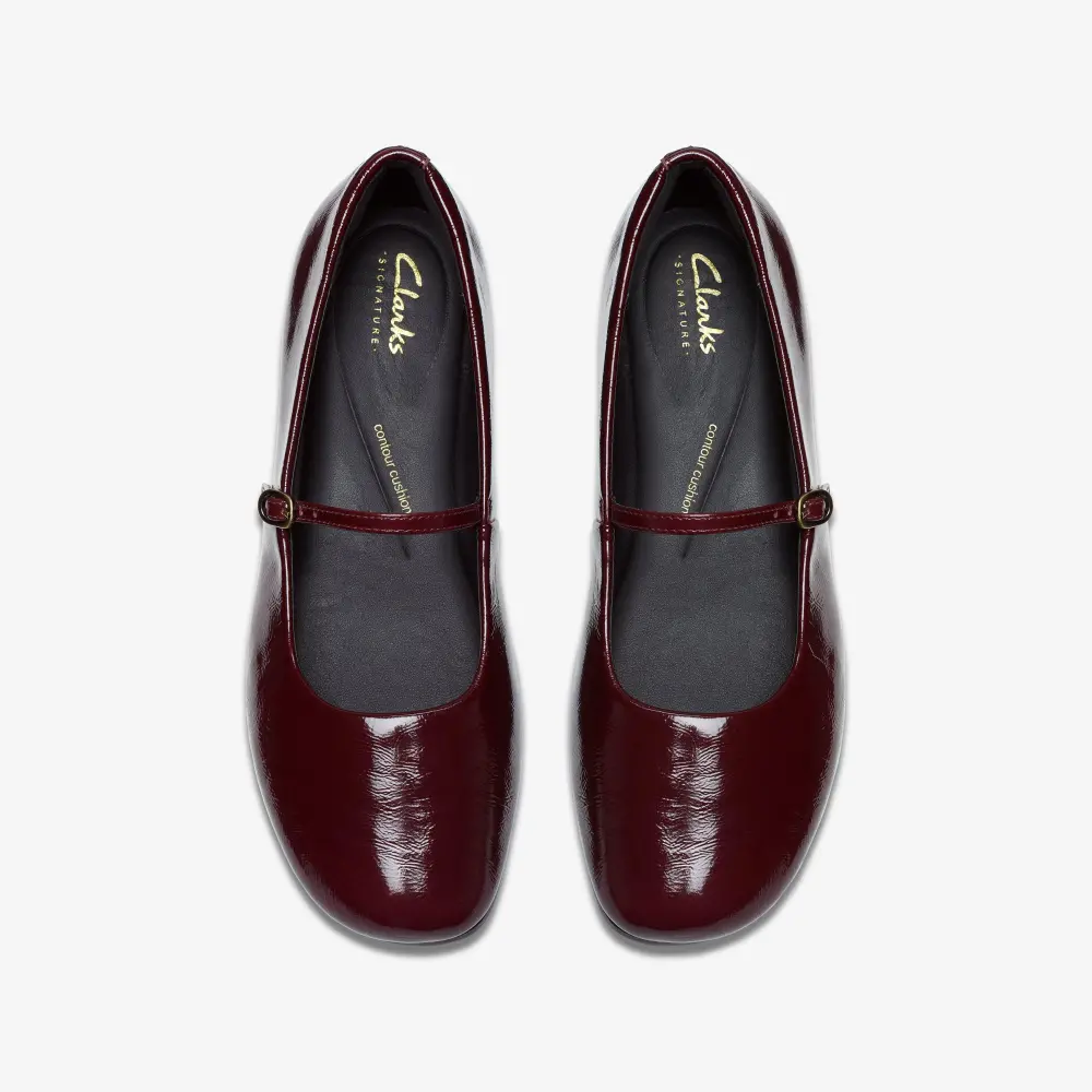 - Premium burgundy patent leather upper