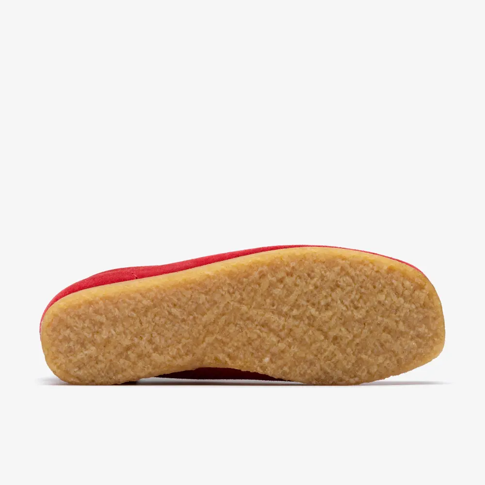 Introducing the Clarks Wallabee™ Boot Harris Tweed Pack, featuring a rich red suede upper with hand-stitched apron seams, this special edition boot is built using classic moccasin construction for ultimate comfort and flexibility.
